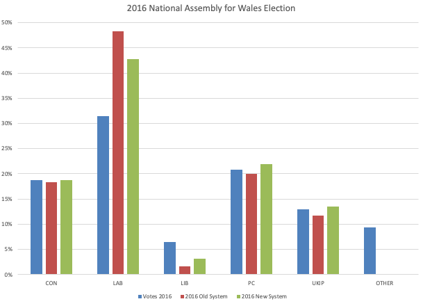Interestingly, the new system would have had a bigger effect on the 2016 Senedd election, when more parties won a significant share of the vote. In 2016, the new system would have given the Liberal Democrats, Plaid Cymru and UKIP more MSs, reducing the Gallagher Index from 13.0 to 9.2.