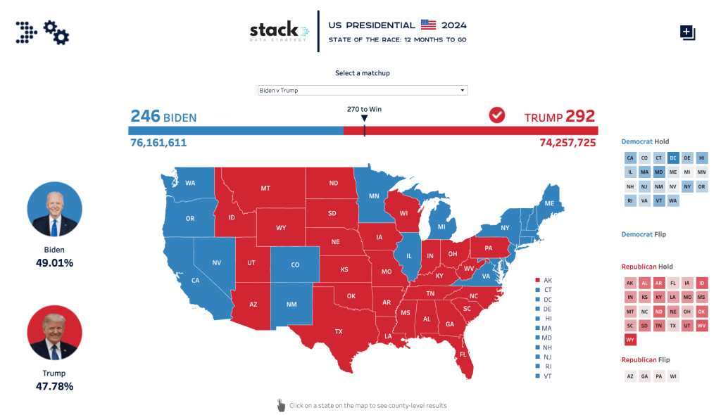 I was part of the team that produced Stack Data Strategy‘s public MRP model of the 2024 election race. My particular focus was on building the poststratification frame and designing the final models used to estimate vote choice. The model was covered in US publications (Business Insider, Forbes, Politico Playbook etc). I worked with John Burn-Murdoch at the Financial Times on his write-up.