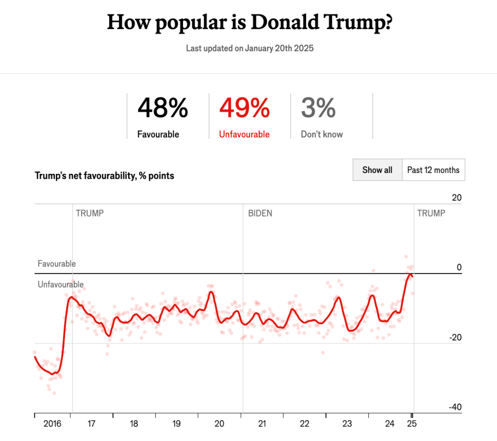 Using a method similar to MRP, I modelled and poststratified Donald Trump’s approval rating, using The Economist’s data with YouGov. The model includes 1,500 respondents each week from YouGov and will update weekly for the remainder of Donald Trump’s second term in office.