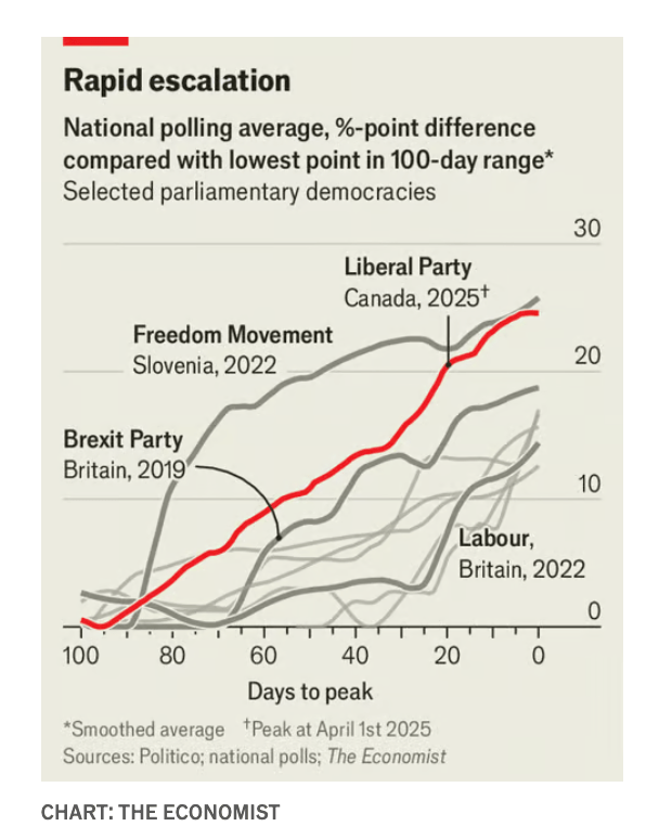 The Liberal Party’s polling surge is Canada’s largest ever – April 2025