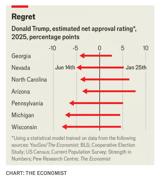 Our model suggests President Trump is under water in every swing state – June 2025